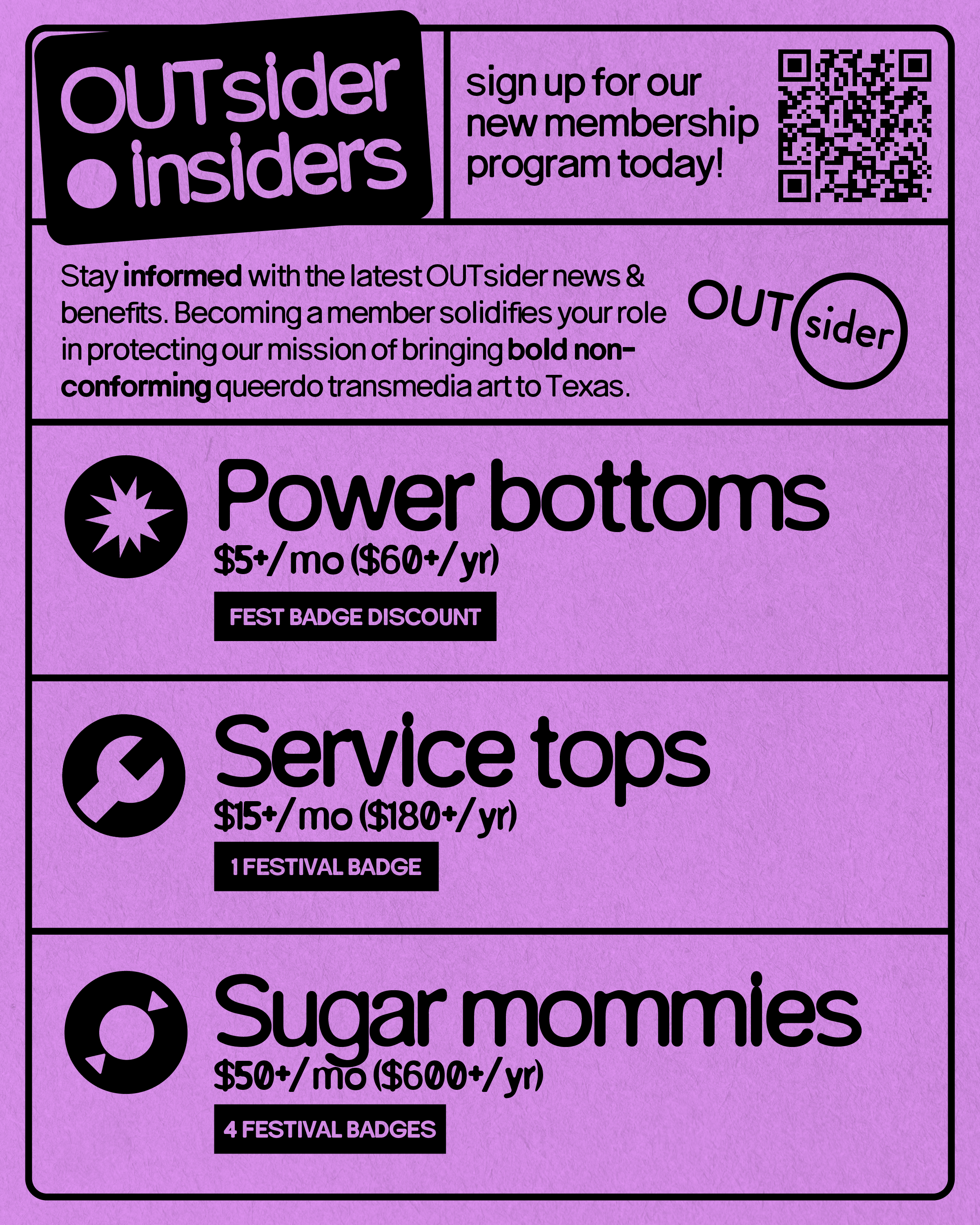 Become a Sustaining Member ✺ Become a Sustaining Member ✺ Become a Sustaining Member ✺ I want to be an OUTsider insider!